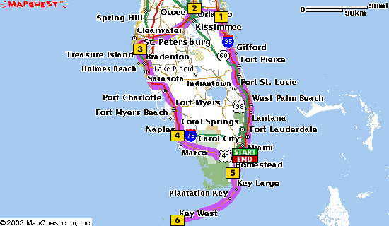 Percorso del nostro tour della Florida ( (c) www.mapquest.com